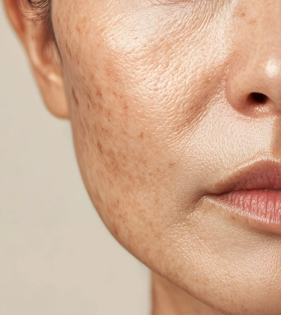 A buildup of dead skin cells and clogged pores leads to dull, rough, and uneven skin.